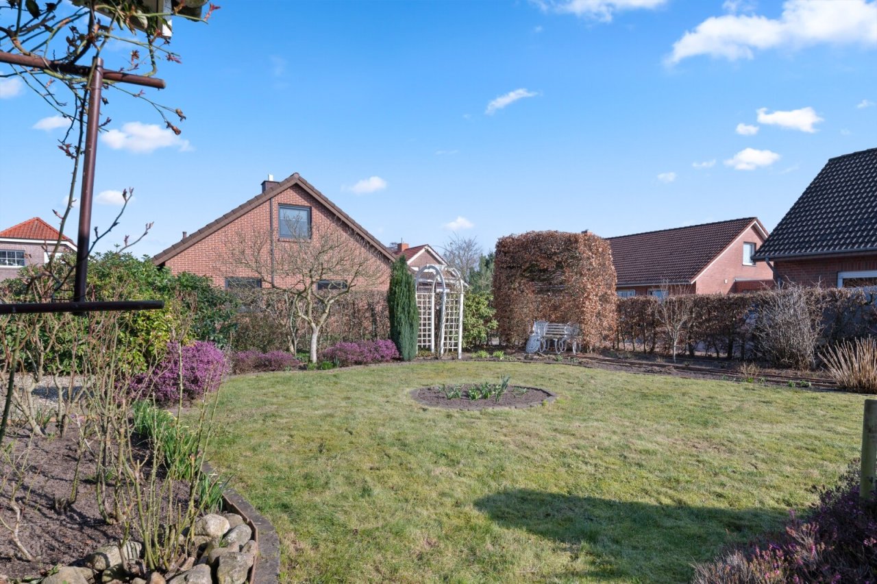 In ruhiger und beliebter Wohnlage von Schüttorf präsentiert sich dieses gepflegte Einfamilienhaus aus dem Jahr 1991 auf einem großzügigen, liebevoll eingewachsenen Grundstück mit einer Größe von ca. 534 m². Mit einer Wohnfläche von ca. 115 m² bietet es ideale Voraussetzungen für Familien mit bis zu zwei Kindern oder Paare, die sich verkleinern möchten, aber nicht auf Raum für Gäste oder Hobbys verzichten wollen.